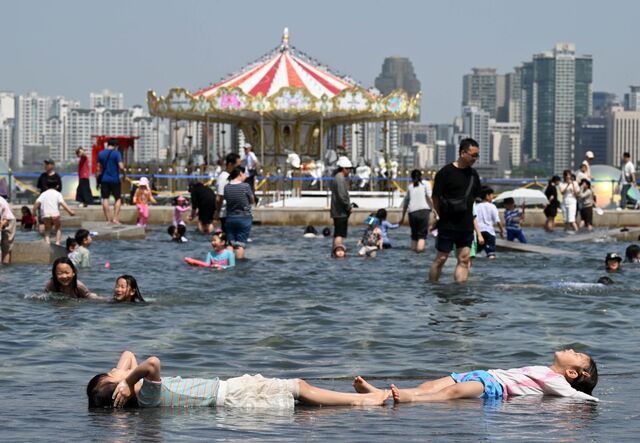 시민들이 19일 서울 영등포구 여의도 한강공원 물놀이장에서 물놀이를 하고 있다. 이날 서울 낮 최고기온은 29.4도까지 올라 4월 중순 기준 역대 최고치를 기록했다.