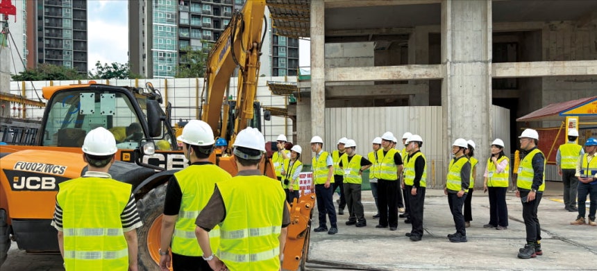 인력 관리도 철저하다. 태블릿PC를 든 안전관리자가 작업자 ID카드를 뒤에 갖다 대자 화면에 인적 사항과 안전교육 이수 내역이 떴다. 발주처인 HDB 관계자도 현장에 상주하며 안전 여부를 함께 점검한다.