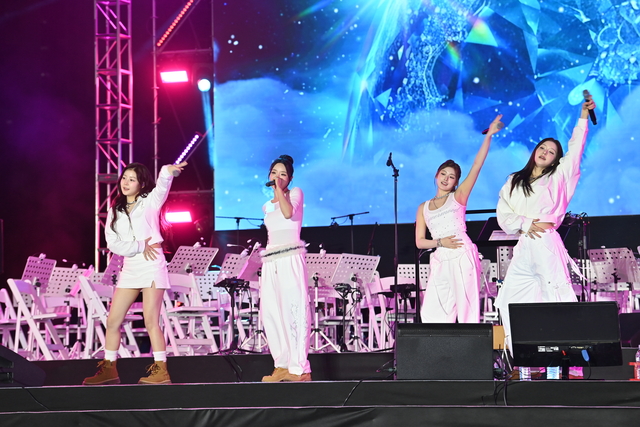 공연의 대미는 ‘큐피드’ 등의 히트곡으로 미국 빌보드 차트에 수차례 오르며 한류를 이끌고 있는 다국적 걸그룹 피프티피프티가 장식했다. 햐얀 의상을 맞춰입고 무대에 노른 키나, 문샤넬, 아테나, 예원 등 멤버들은 ‘스태리 나잇’과 ‘푸키’ ‘스키틀즈’ 등 그들을 세계적인 K-팝 스타로 주목받게 한 노래들을 열창했다. 자로 잰듯 맞춘 군무와 요염한 몸짓에 공연은 절정을 맞았다.