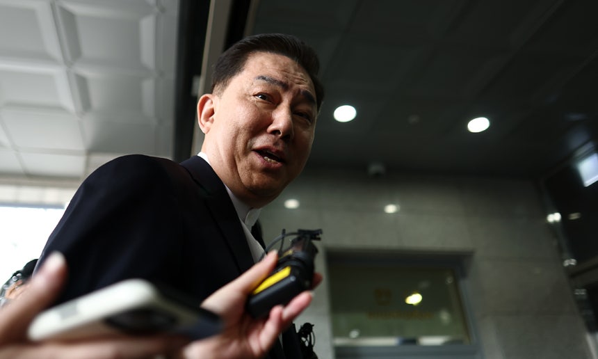 | 뇌물수수 의혹 등을 받는 무소속 김병기 의원이 조사를 받기 위해 지난 3월 31일 마포구 서울경찰청 공공범죄수사대에 출석하며 취재진 질문에 답하고 있다. 연합뉴스 |