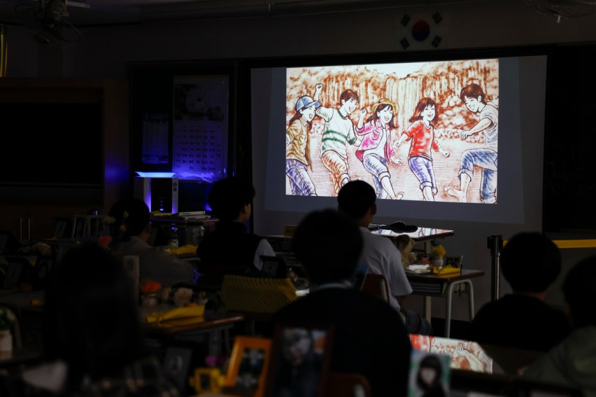 이들은 교실을 둘러보고 책상 위에 놓인 유품을 어루만지며 희생자들을 추모했다. 참사에 대한 기억이 없는 초등학생들은 단원고 학생들의 꿈이 머물던 책상에 앉아, 안내 해설사로 활동하는 유가족의 설명에 귀를 기울였다. 칠판 앞에 설치된 스크린에서는 제주도에 도착했다면 환하게 웃으며 즐거운 시간을 보냈을 단원고 학생들의 그림이 나타났다. 추모 영상이 끝나자 어린 학생들은 고사리 같은 손으로 ‘잊지 않겠다’라는 약속을 방명록에 적었다.