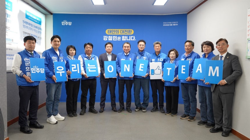 더불어민주당 태안군 6.3 지방선거 후보자들이 19일 ‘원팀’을 선언했다.