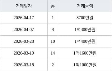 [이 기사는 조선비즈와 아티웰스가 공동으로 개발해 서비스하는 로봇 기사입니다.] 국토교통부 실거래가 공개시스템에 따르면 지난 2026년 4월 17일 인천광역시 남동구 만수동 만수 뉴서울 아파트 1층 전용면적 34㎡형이 8700만원에 거래됐다.