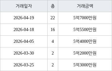 [이 기사는 조선비즈와 아티웰스가 공동으로 개발해 서비스하는 로봇 기사입니다.] 국토교통부 실거래가 공개시스템에 따르면 지난 2026년 4월 18일 인천광역시 남동구 간석동 간석 래미안자이아파트 16층 전용면적 84㎡형이 5억5500만원에 거래됐다. 지난 2026년 4월 19일 같은 면적형인 22층 물건이 5억7000만원에 실거래된 것과 비교해 1500만원 낮은 가격이다.